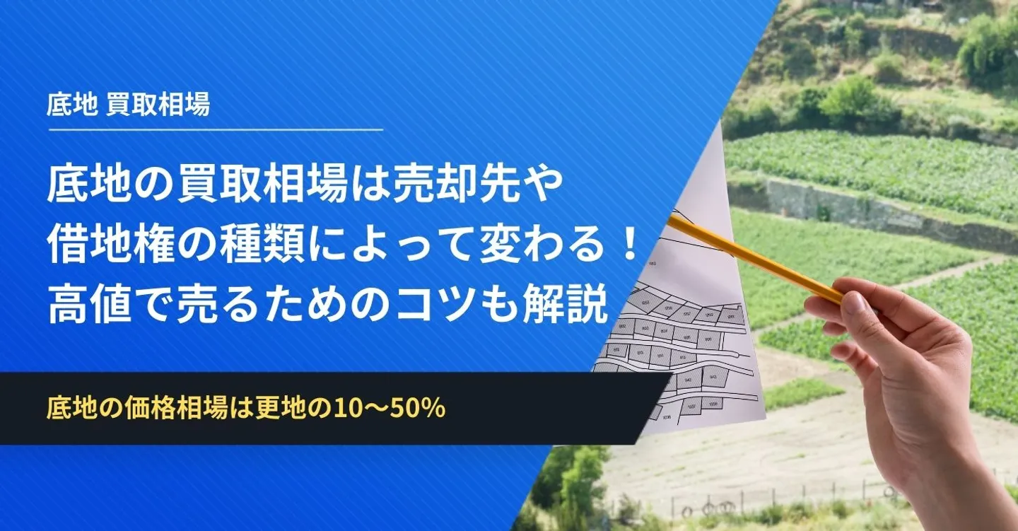 底地の買取相場は、売却先や借地権の種類によって異なります。あくまで目安ですが、更地価格の10%〜50%が底地の買取相場といわれています。
