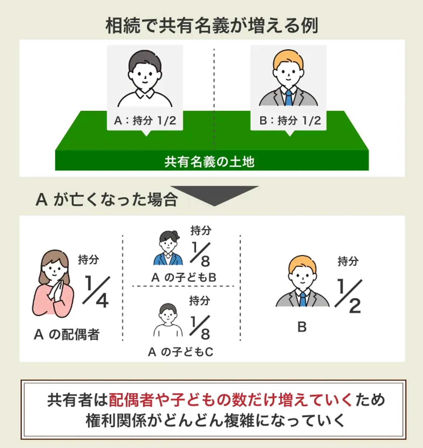 - 相続のたびに共有者が増えて権利関係が複雑化する