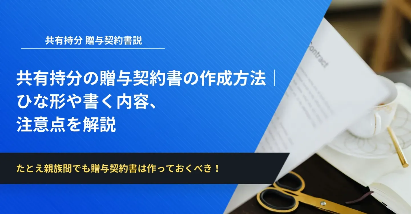 特に共有持分は金額も大きく、相続や税務にも直結するため、贈与契約書を作成することが重要です。贈与契約書を作成しておけば、贈与内容や持分割合、贈与日が明確になり、契約の履行や税務調査への対応もスムーズになります。