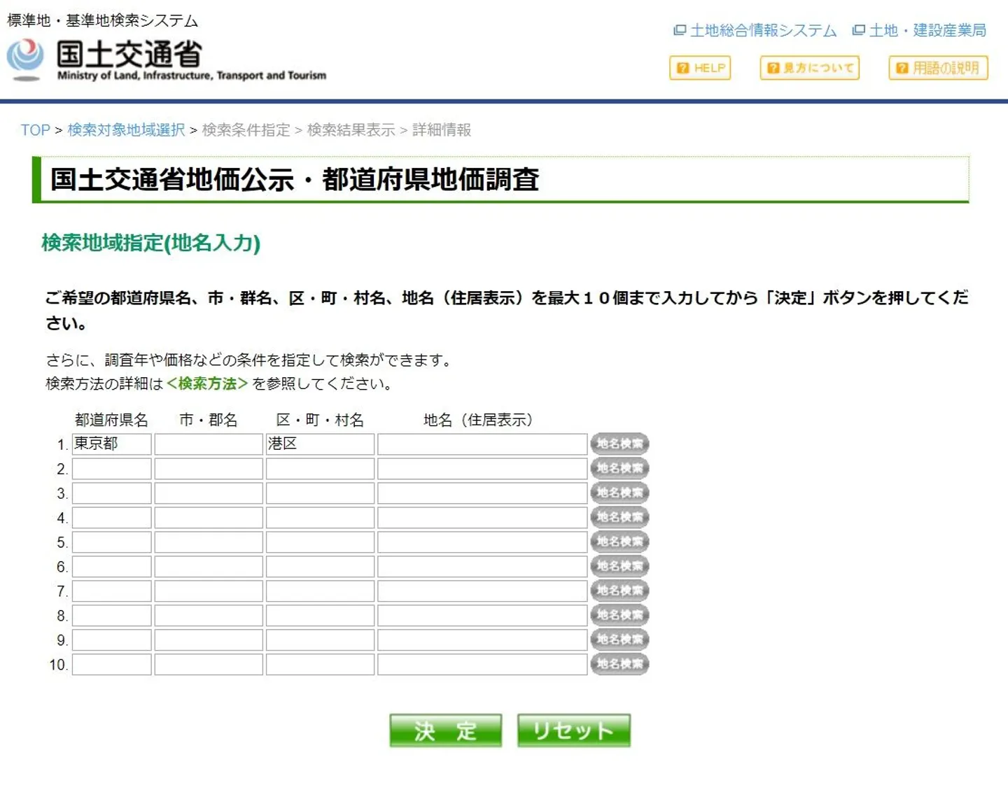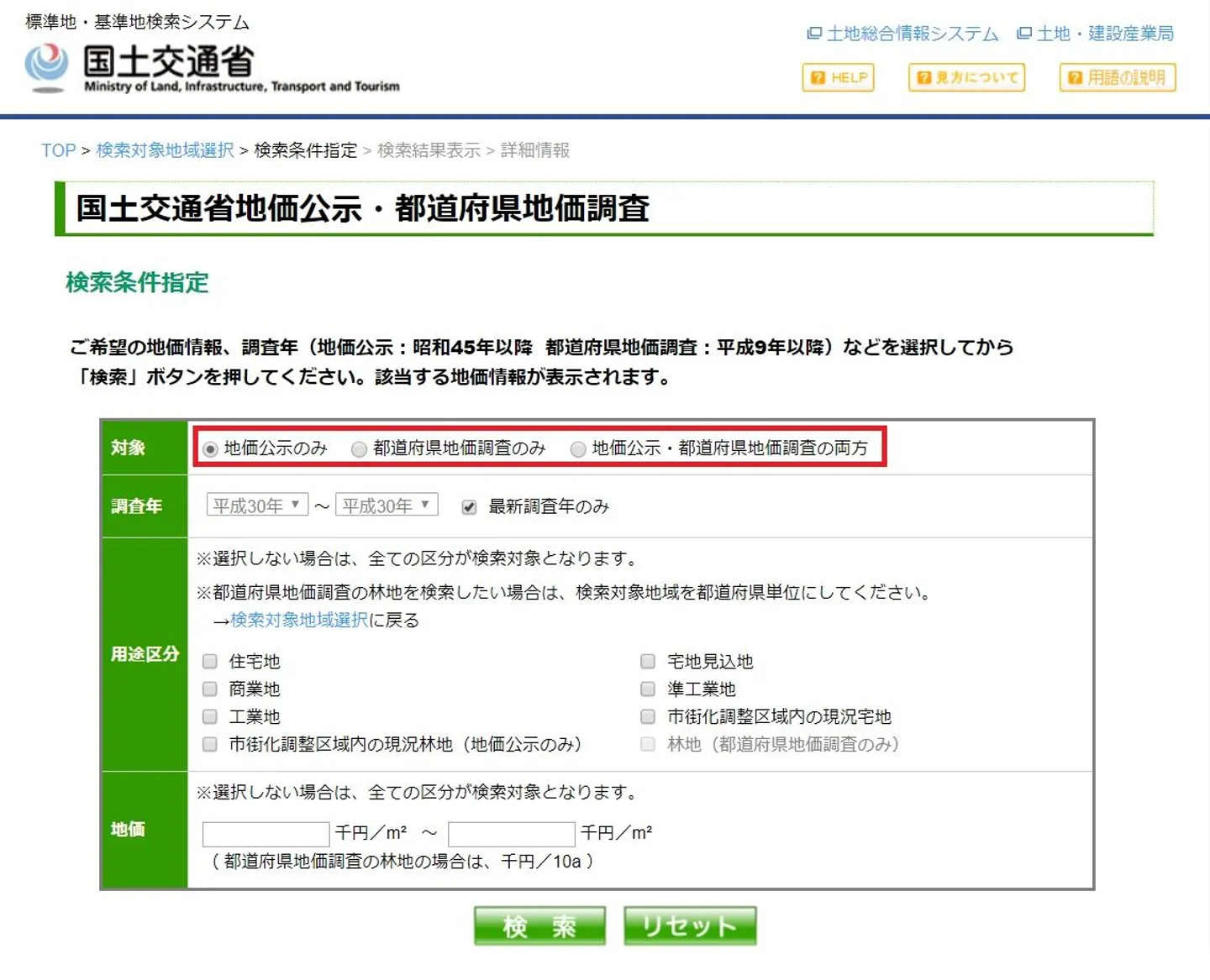 公示地価と基準地価は国土交通省のサイト「地価公示・都道府県地価調査」で確認できます。