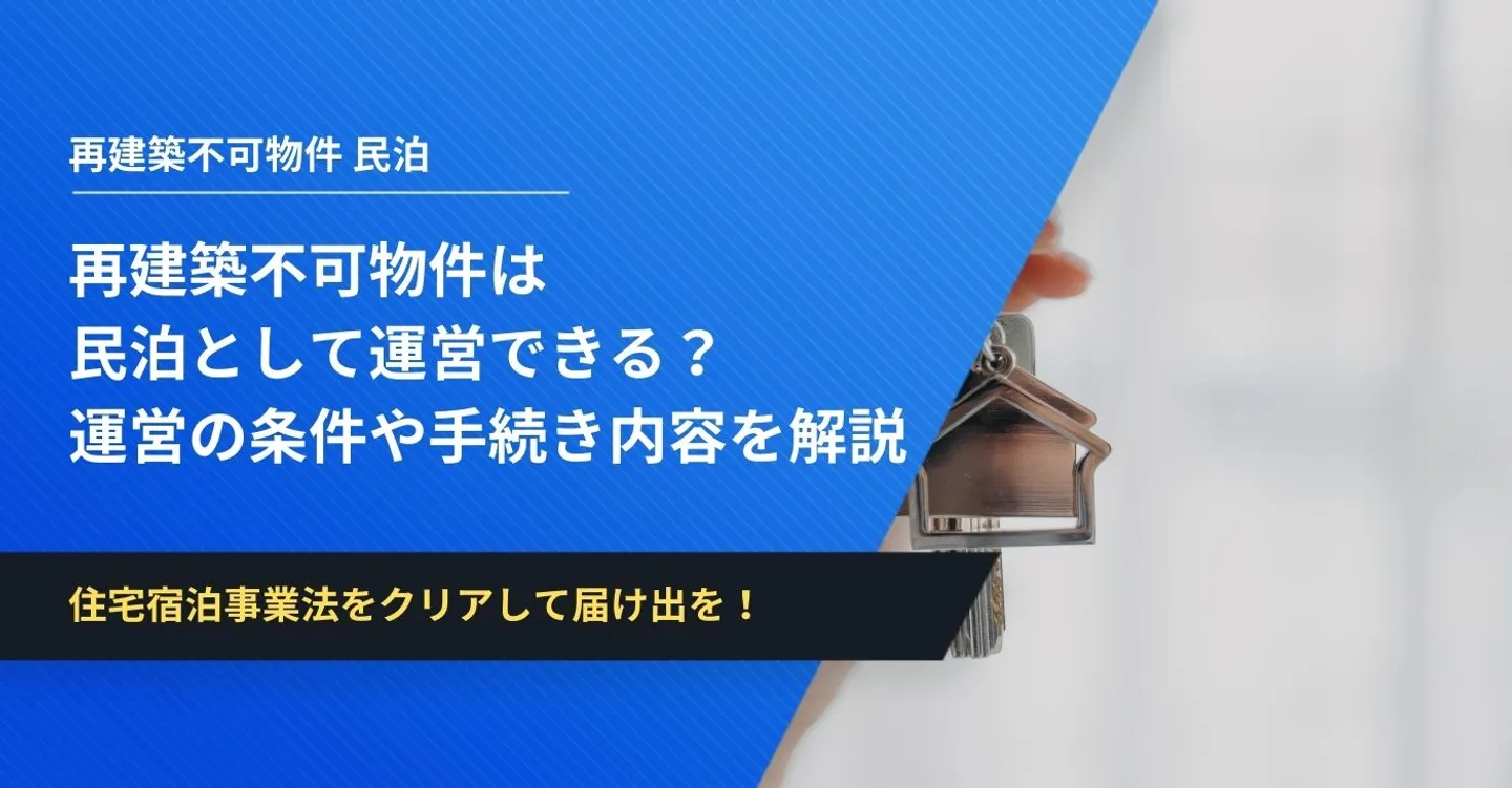 住宅宿泊事業法において「再建築不可物件は民泊ができない」といった制限はないので、条件さえ満たせば民泊を運営できます。
