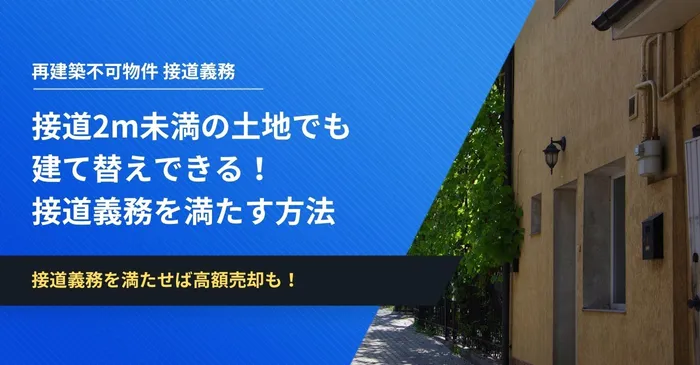 家は、原則として建築基準法上の道路に2m以上接している必要がありますこれを「接道義務」といい、違反している場合は再建築ができないなどデメリットがあります。