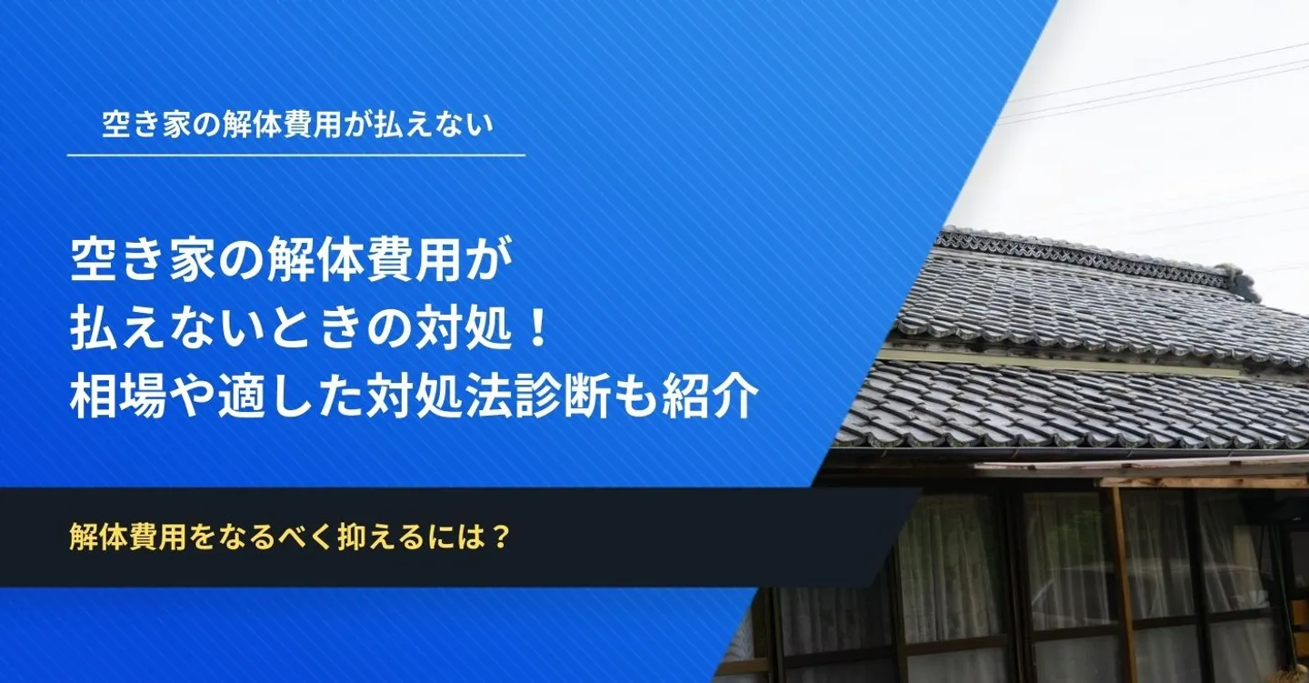 家の解体費用は100~200万円以上と高額になる可能性があります。解体費用を払えない場合は、補助金制度や空き家解体ローンの利用、売却益での解体などを検討しましょう。