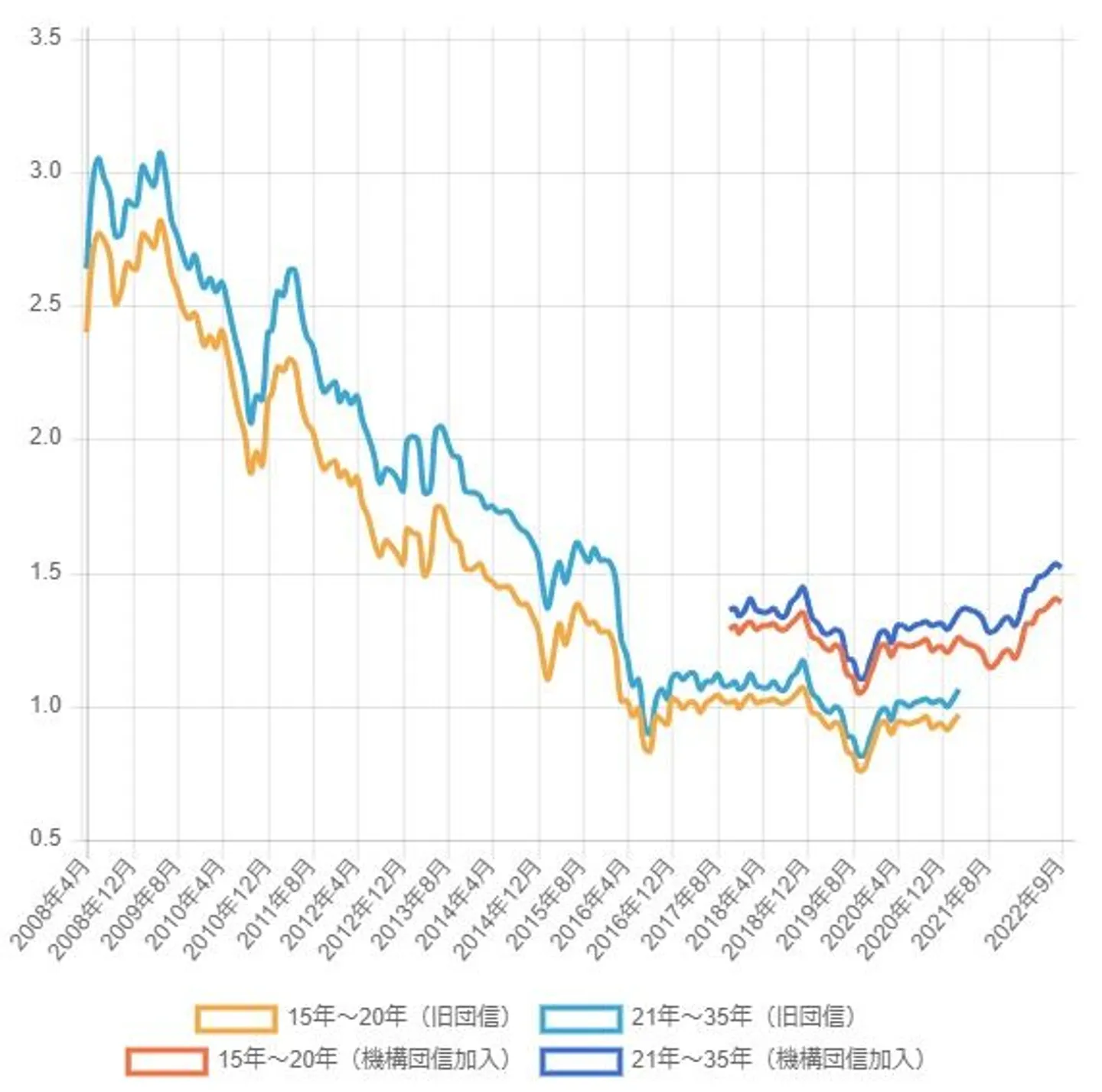また、長期固定金利のフラット35も、おおむね1~1.5%程度の推移です。