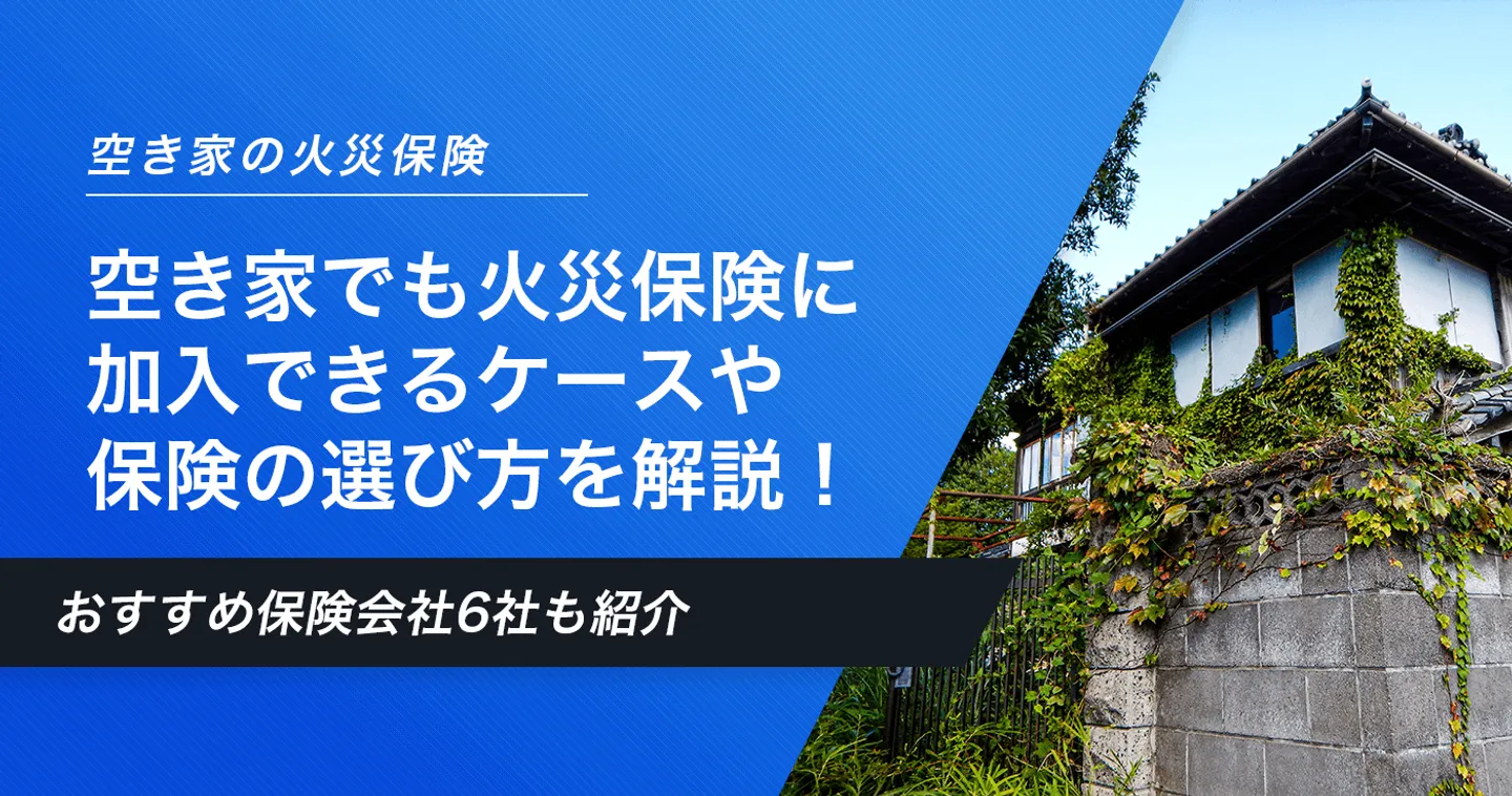 空き家を補償の対象としている保険会社については「空き家も加入できる保険会社6社」、空き家が火災保険に加入できるケースについては「空き家でも火災保険に加入できるケース」の見出しで後述するので、詳しくはこちらを参考にしてみてください。