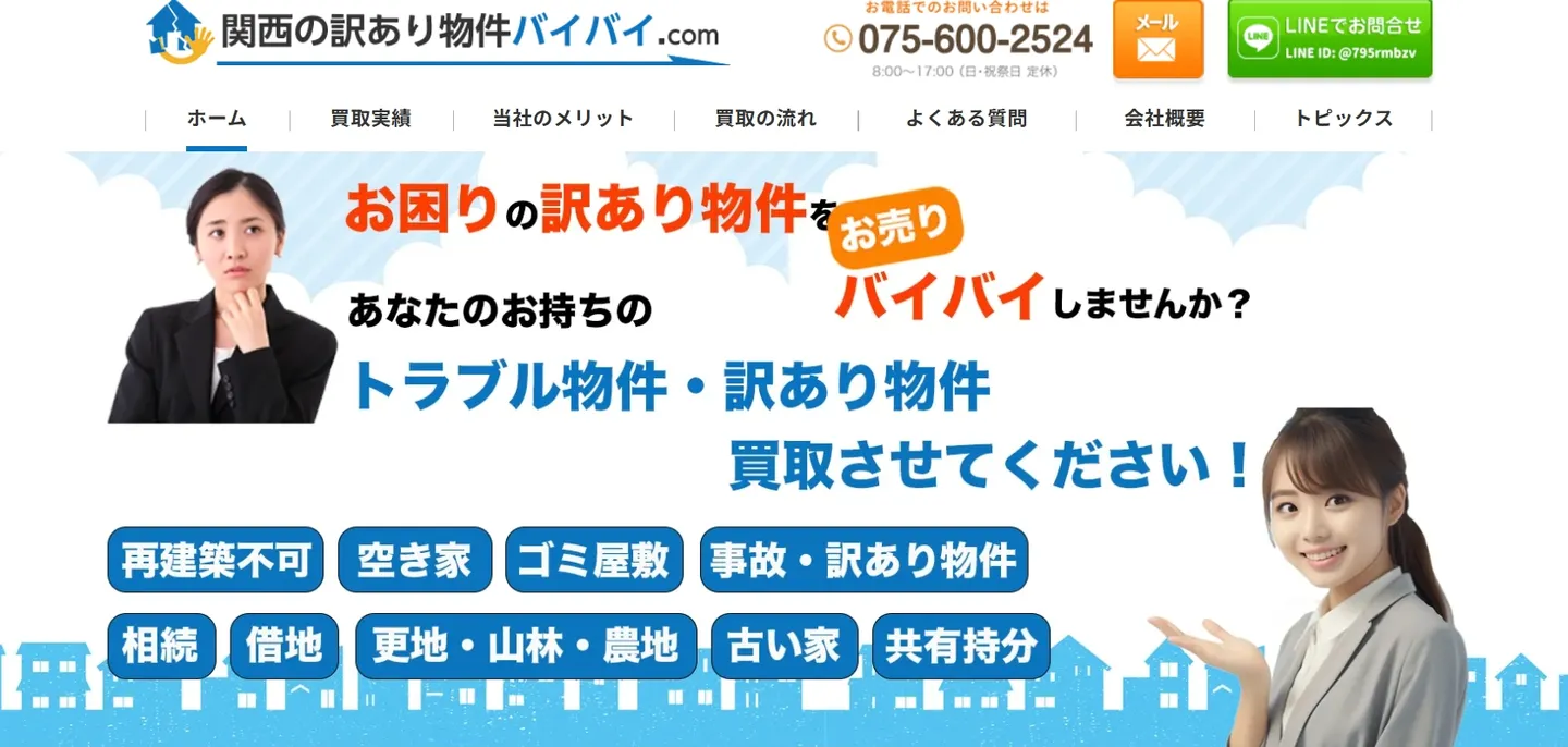 一般の市場では需要が低い訳あり物件でも問題なく買い取ってくれるから