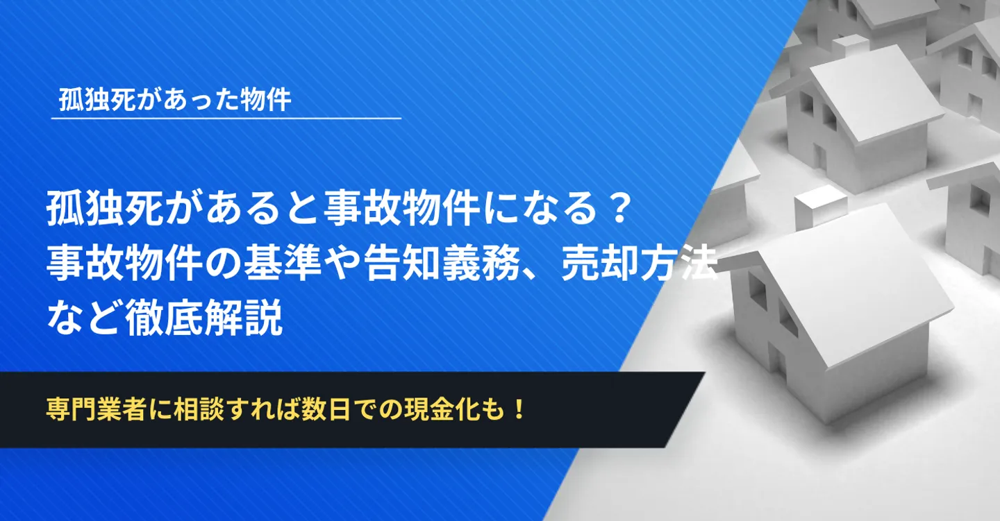 孤独死があった物件が事故物件に該当しており、さらに立地条件などもよくない場合、仲介ではなく専門の買取業者に依頼するのがおすすめです。とくに、訳あり物件専門の買取業者であれば、仲介で売れないような孤独死物件であってもスムーズに買い取ってもらえます。