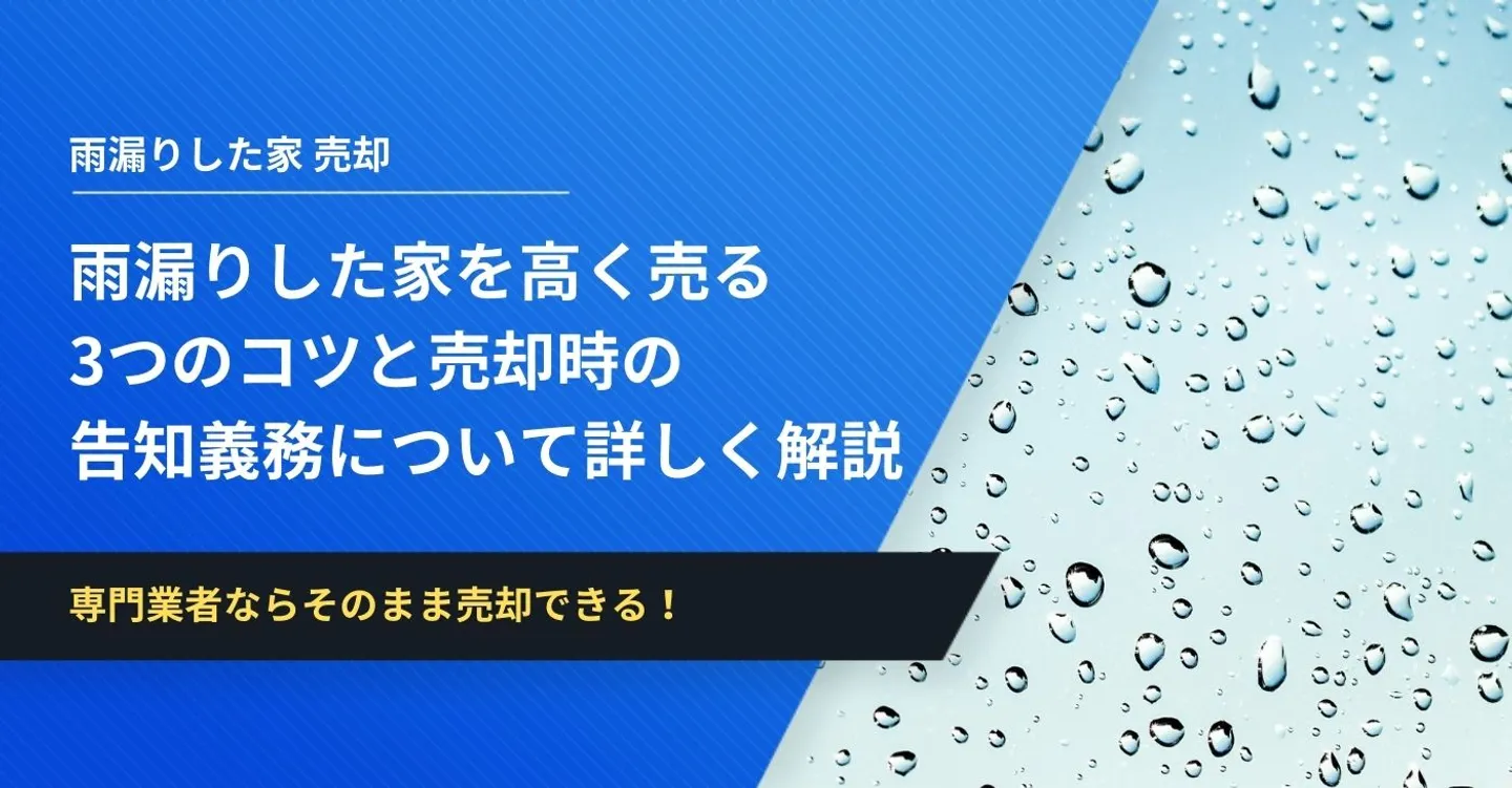 一方で、一般的な住宅やマンションを中心に扱う不動産会社へ売却する場合、雨漏りなどの瑕疵物件は安く買い叩かれる傾向があります。
