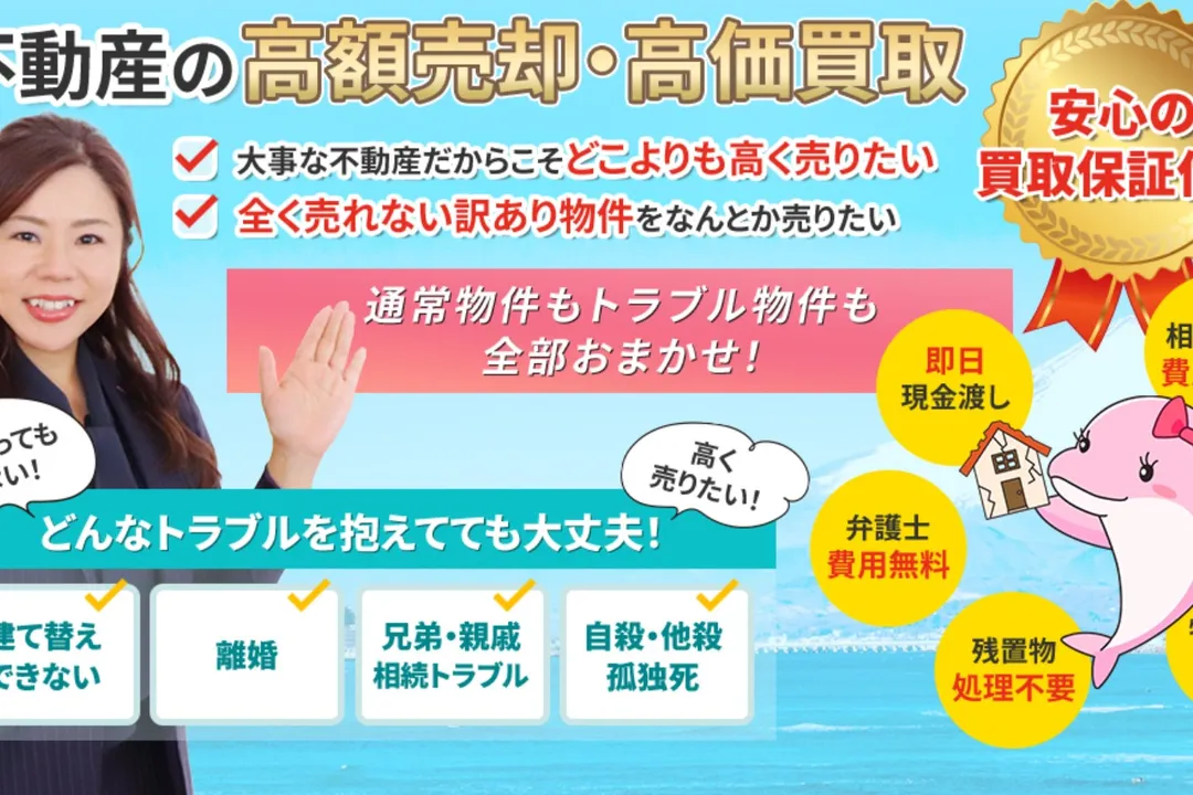 ◆大阪で地域密着型の営業を続ける不動産業者◆空き家から事故物件・借地権・共有持分まで幅広い訳あり物件を買取◆仲介での売却もサポート◆買取保証付きなので仲介で売却できなくても安心◆オウンドメディアが充実しており売主に必要な知識も学べる◆