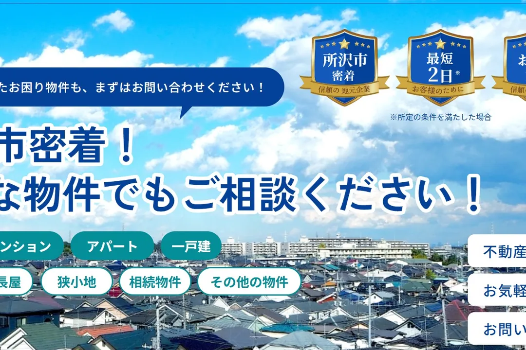 ◆年間売上高15億円超◆同業の不動産会社からも、扱いに困った物件を買取◆再建築不可物件や変形地・狭小地など数多くの買取り実績◆電話やメールで無料査定・相談◆メールは24時間相談受付中