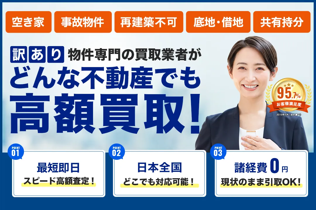 ◆累計買取件数4,000件超!◆日本最大級の事故物件買取サイト◆事故物件買取件数No.1◆最短2日で現金化可能なスピード高額査定◆お客様第一主義でお客様満足度96.2%◆日本全国の事故物件・訳あり物件の買取に対応!